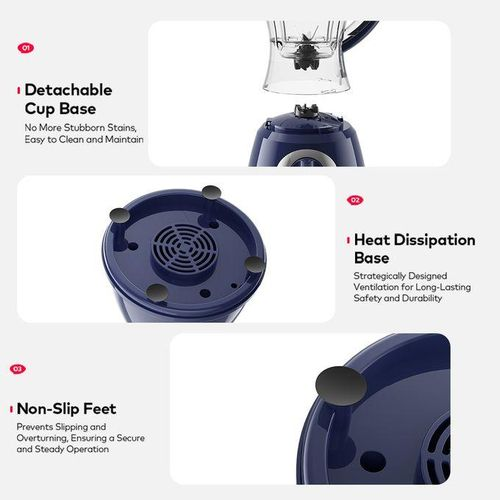 This blender runs on a 350W motor made with 100% pure copper coil, ensuring strong performance and better energy efficiency. It easily blends fruits, vegetables, and semi-hard items like beans and nuts.