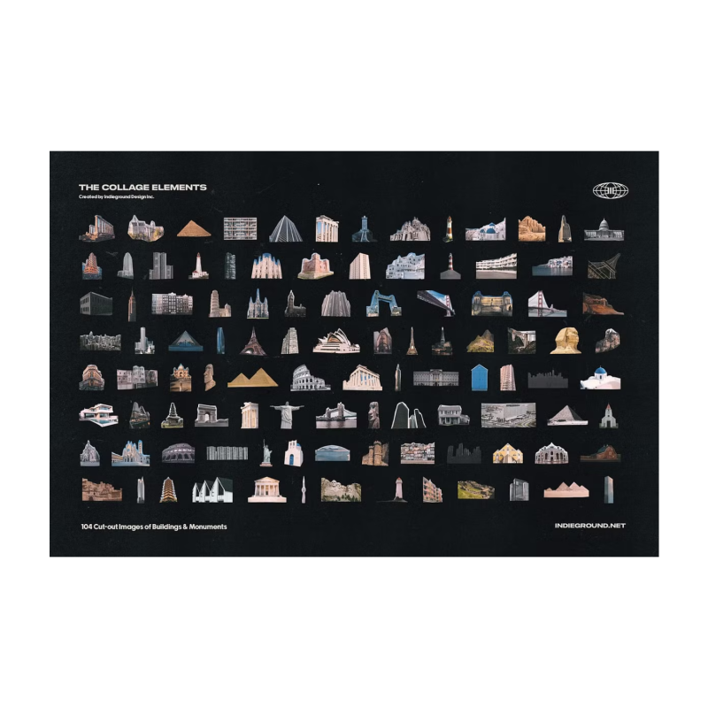 The Collage Elements PNG Collection by Indieground This amazing product made by the Indieground Team is the definitive collection of 1509 elements for a master collage creator. It gives you a quick & easy graphic resource that you can use to make rad collage artwork. The collection is composed of real hand-cut images, in a mix of both rough and accurate cut-through for an authentic effect. The images were researched & found through vintage magazines, postcards, books, and digital printed material, scanned at 1600 dpi, and then individually isolated and exported as 300 dpi PNGs with a transparent background. The result is an incredible collection of authentic-looking cutouts easy to use and perfect for your creative projects such as posters, art prints, vintage artworks, apparel design, Instagram and other social media posts or stories, and much more, with a cool retro mood & aesthetics.