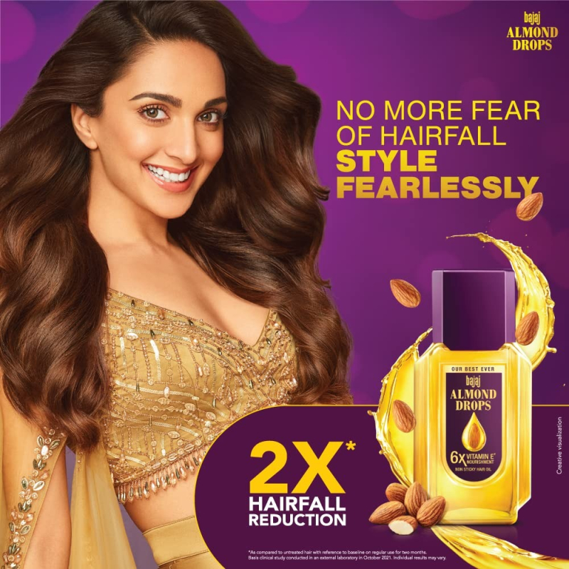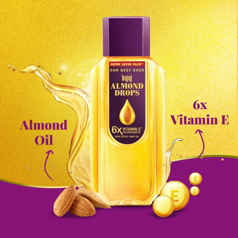 • Bajaj Almond Oil can help reduce hair fall due to breakage by up to 79%