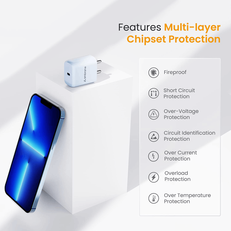 • Multi-layer Chipset Protection - The charger comes with multi-layer chipset protection that protects against short circuits, over-voltage, and more.