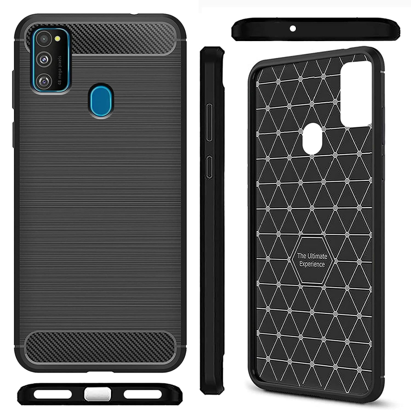 • Samsung Galaxy M30s with perfect cutouts for volume buttons, audio, and charging ports