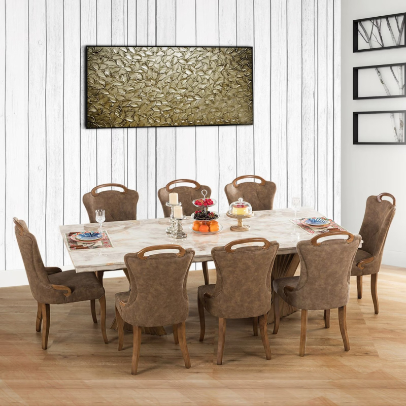 Table: H 75 x W 220 x D 110; Chair: H 97 x W 48 x D 48