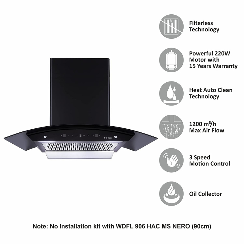 Elica 90 cm 1200 m3/hr Filterless Auto Clean Chimney with 15 Years Warranty