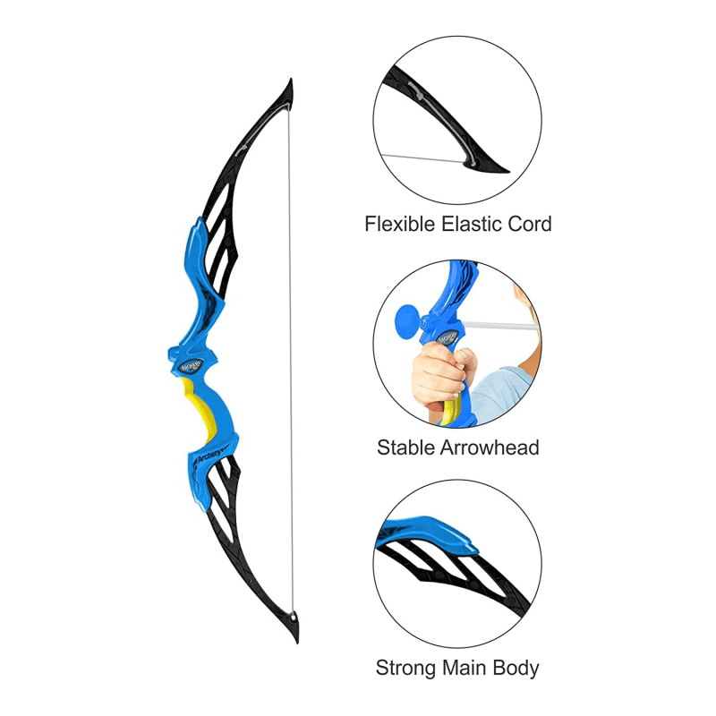 • High Quality And Safe Material - The bow and arrow kit is made of durable ABS plastic, the bow is fixed with double screws, solid, firm and durable. Able to withstand multiple hours of use without breaking.