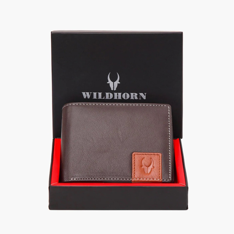 Men Brown Solid RFID Protected Leather Two Fold Wallet