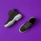 • A pair of Black heeled boots has regular ankle and lace-ups