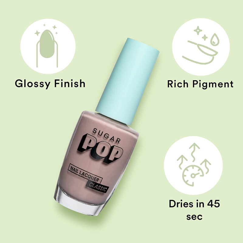 • SUGAR POP NAIL LACQUER has a quick drying formula that dries in 45 seconds giving you a perfectly glossy finish.