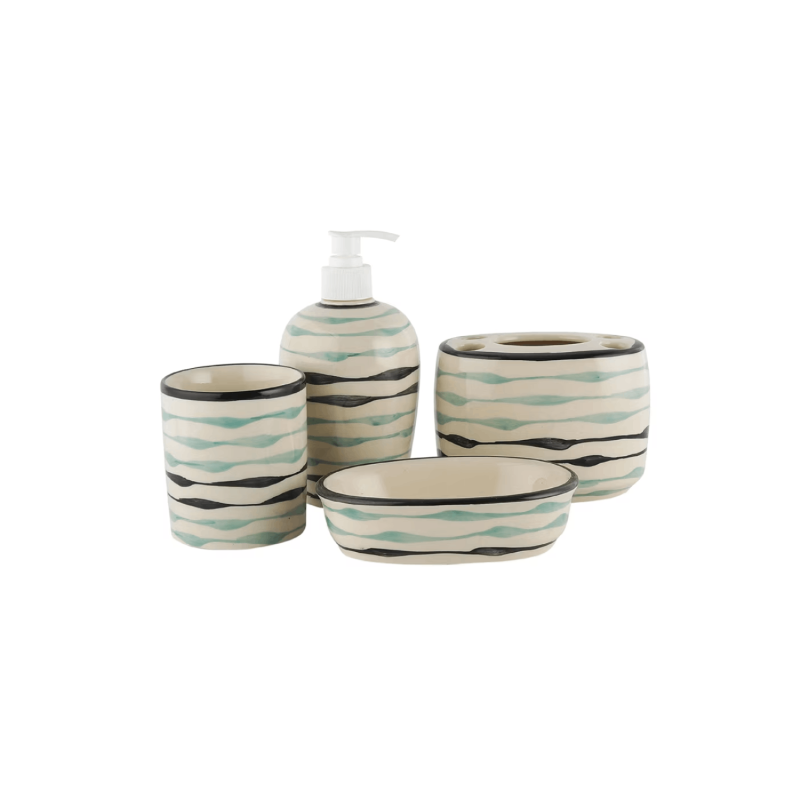 • Package contains: 1 soap dispenser, 1 soap dish, 1 tumbler,1 brush holder