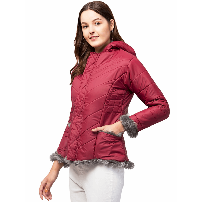 Women's & Girl's winter wear full sleeve solid Hoodie Quilted Bomber Jacket & Coat